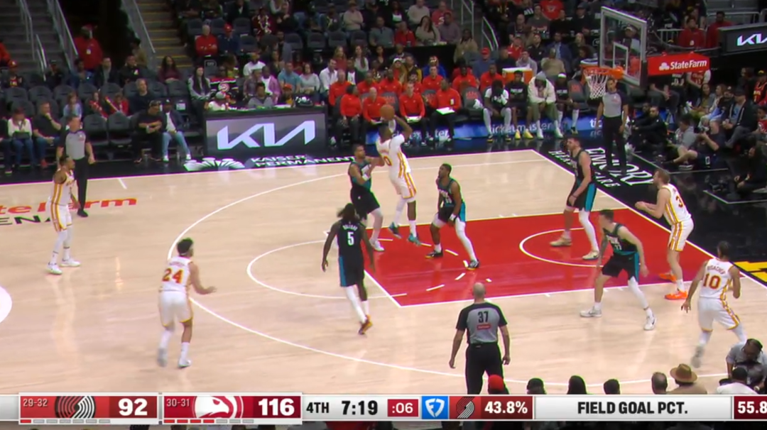 常规赛,老鹰主场135-101战胜开拓者。